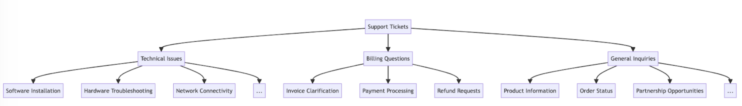 For example, you might have a top-level classifier that broadly categorizes tickets into “Technical Issues,” “Billing Questions,” and “General Inquiries.” Each of these categories can then have its own sub-classifier to further refine the classification.