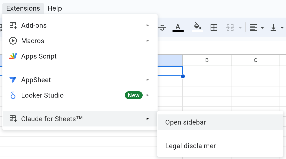 Install the Claude for Sheets extension
