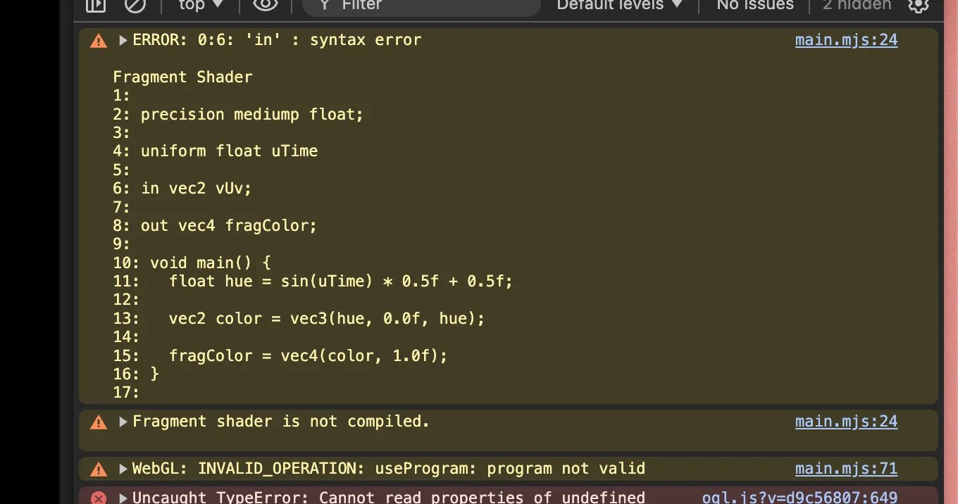 Note: Iâll be using OGL to render the shader. If you havenât used it before, itâs a lightweight alternative to Three.js. Itâs not as feature-rich, but it can do a lot of cool shader + 3D work while being 1/5th of the size.